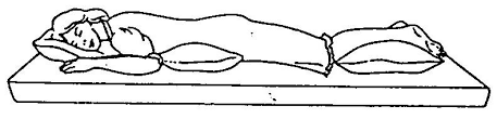 Hastanın ayaklarının aşağı veya yana sarkmaması için ayak bileklerinin altına yastık koymak gereklidir. Başını kolaylıkla çevirebilmek için, başının altına konacak ufak bir yastığa gereksinme duyar hasta. Genellikle hastanın kaburga kemiklerinin altına da bir yastık koymak yararlıdır