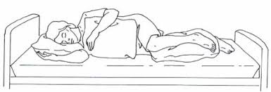 Hastanın bu pozisyonda rahat edebilmesi için şunlar yapılmalıdır: Hastanın başının ve boynunun altına bir yastık koyun. Üstteki kolu yastıkla destekleyin. Üstte ki bacağın altına da bir veya iki yastık yerleştirilmelidir.